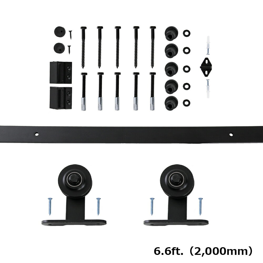 バーンドア 片引き戸 6.6ft 2,000mm トラック レールキット T字 オープン デザイン 室内ドア 上部固定 アウトセット スライド 横開き 建具 扉 ドア 戸 上吊 吊り戸 吊車 滑車 室内 屋内 インテリア 寝室 トイレ 収納 間仕切り 倉庫 DIY 送料無料